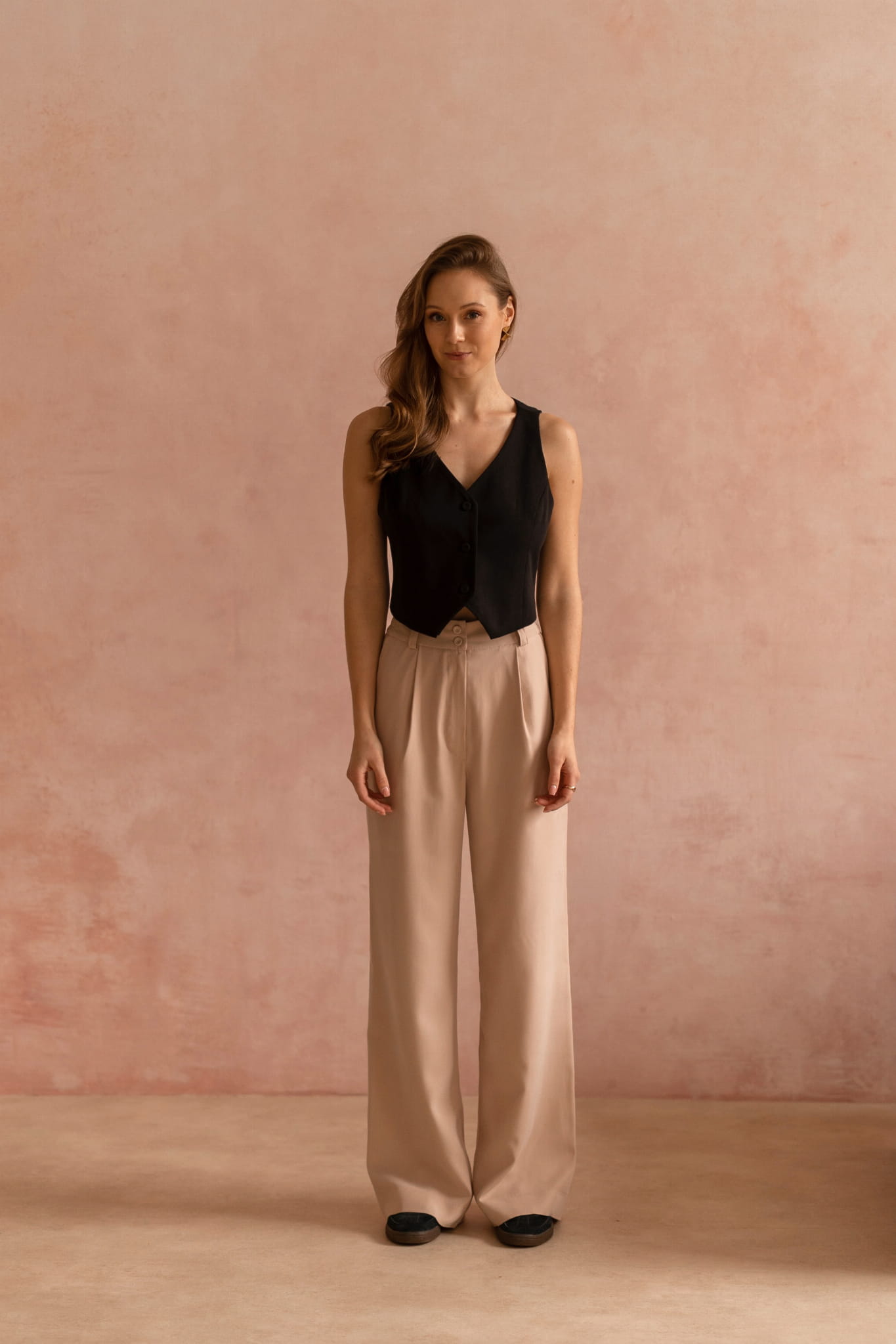 Kamizelka garniturowa to stylowy dodatek do garnituru lub stroju formalnego. Świetnie sprawdzi się w połączeniu ze spodniami Veneto oraz marynarką Nora tworząc elegancki strój biznesowy. Wykorzystasz ją również na co dzień na przykład do ulubionych jeansów, czy spódnic.