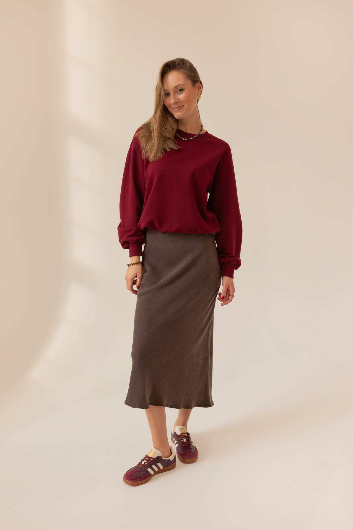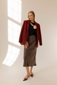 Czekoladowa spódnica midi to doskonały element jesiennej szafy kapsułowej. W zależności od dodatków stworzysz z jej udziałem zarówno codzienne stylizacje, jak i te na ważne dla Ciebie uroczystości.
